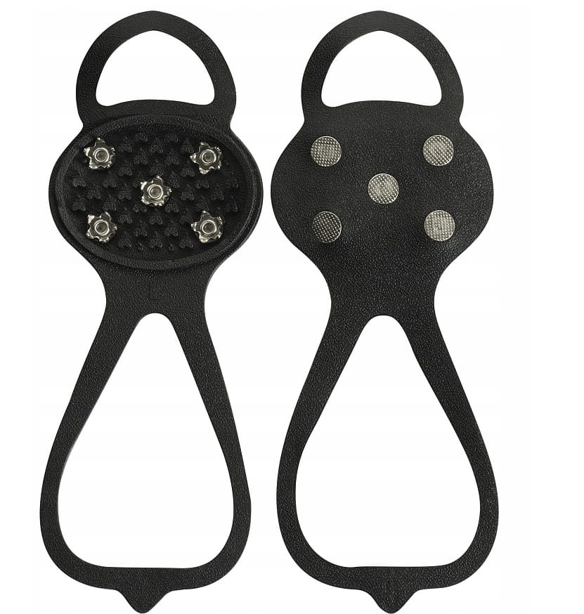 - Elastyczne, antypoślizgowe nakładki na buty z kolcami, wyposażone w metalowe kolce! Doskonale nadają się na piesze wędrówki w lasach i górach oraz trekking w trudnych warunkach terenowych i atmosferycznych. Skutecznie chronią przed poślizgnięciem się i upadkiem, dzięki zastosowaniu 5 haków z hartowanej stali. Nie męczą nóg, są bardzo lekkie! Dobrze dopasowują się do kształtu buta! Dzięki zastosowaniu silikonu można je dopasować do obuwia o kilku rozmiarach (40-46), bez ryzyka ich nie zsunięcia się.
